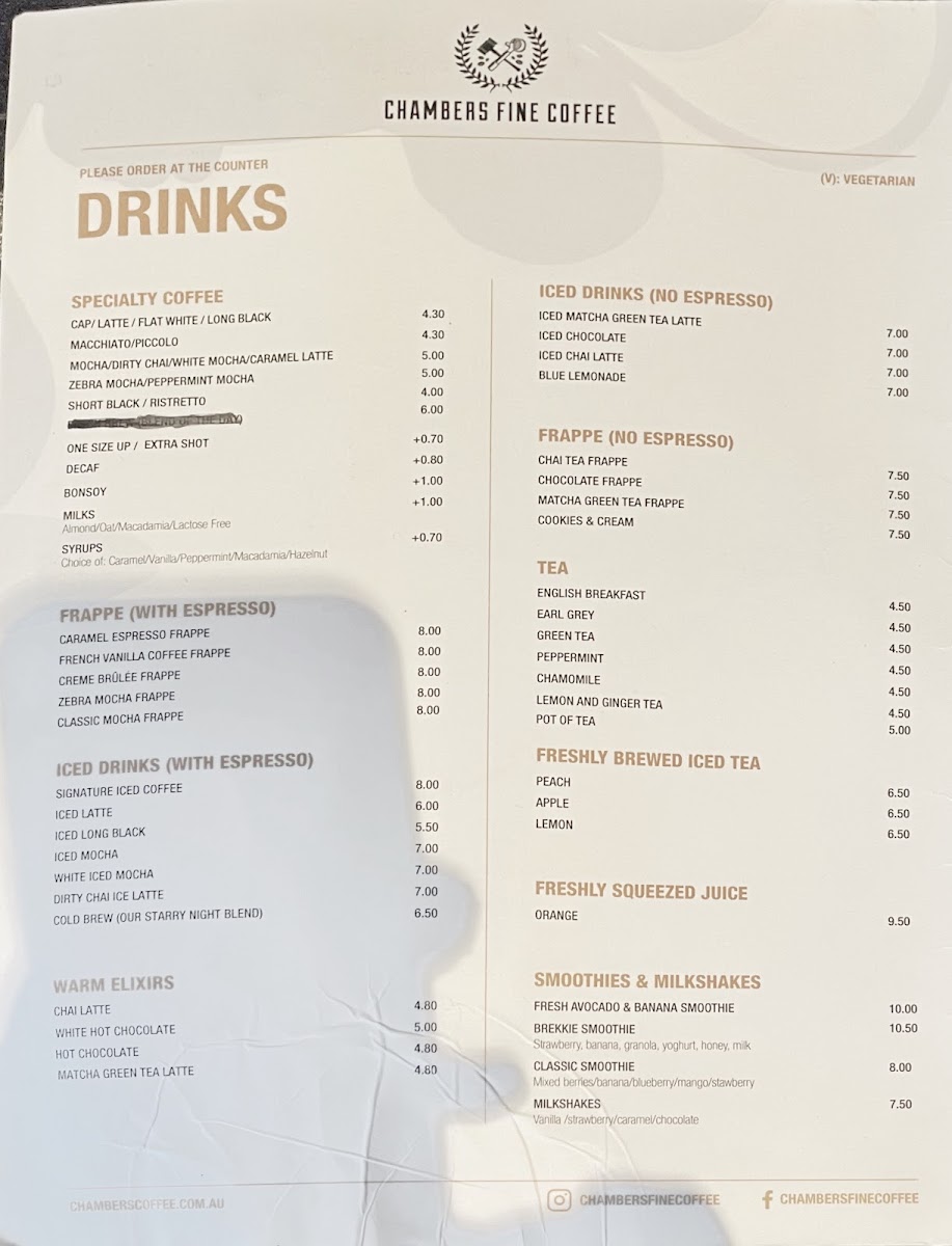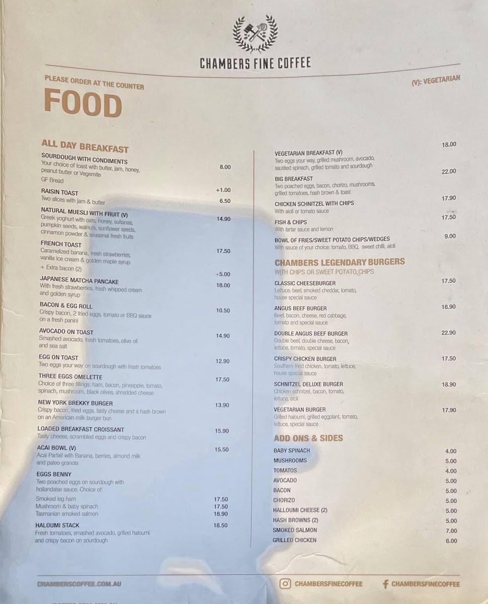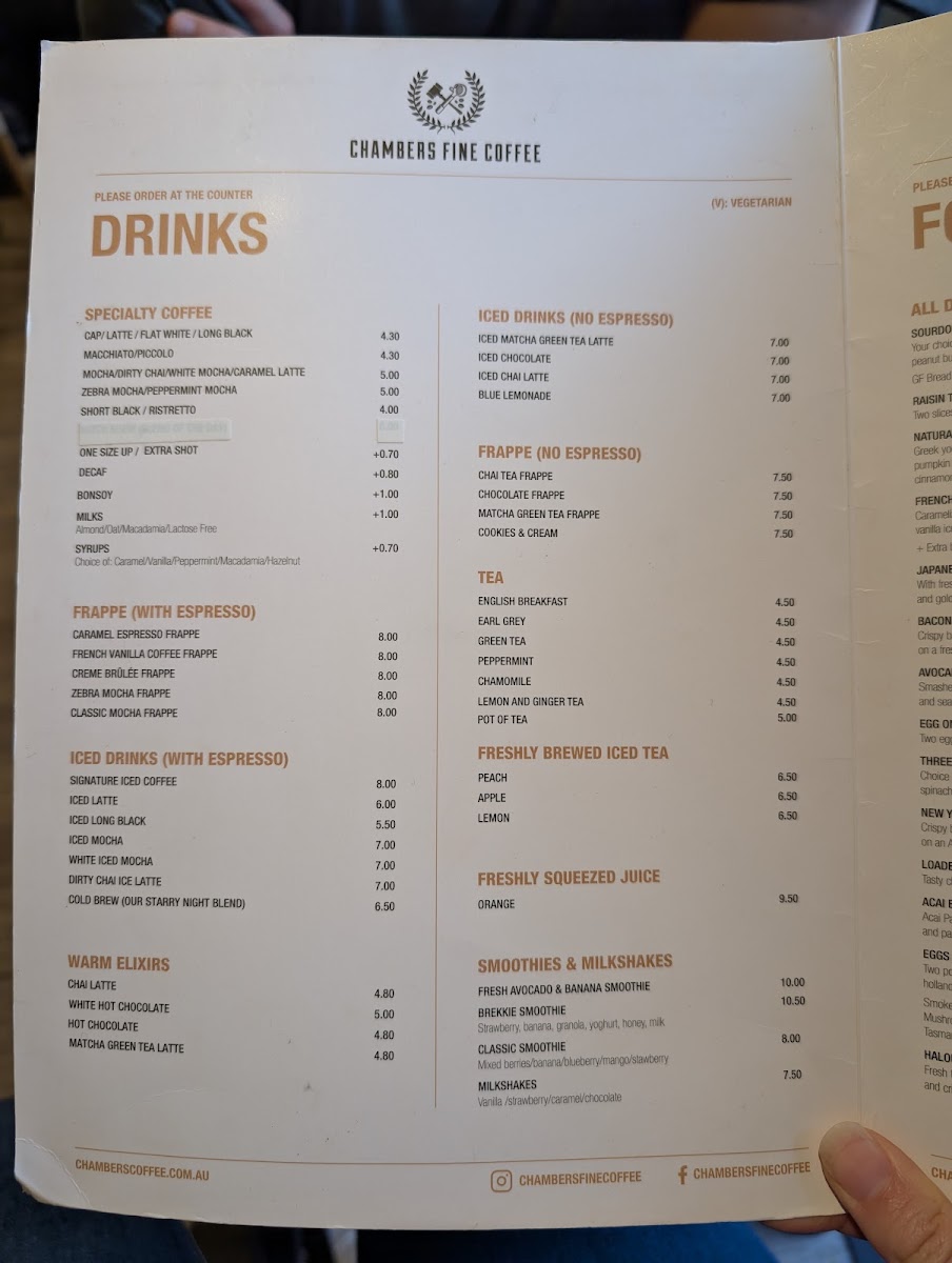 Chambers Coffee @ Haymarket Menu